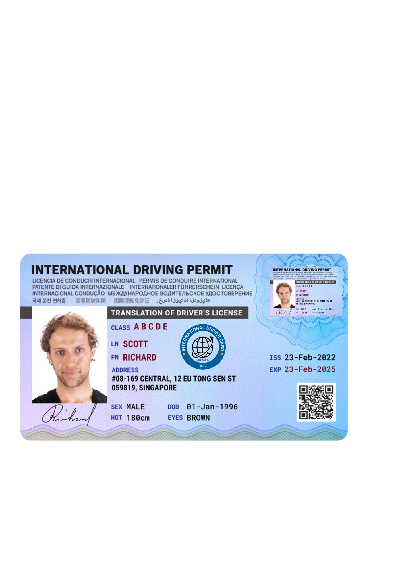 A QR code at the bottom of the card allows you to access your digital IDP booklet using your smartphone.